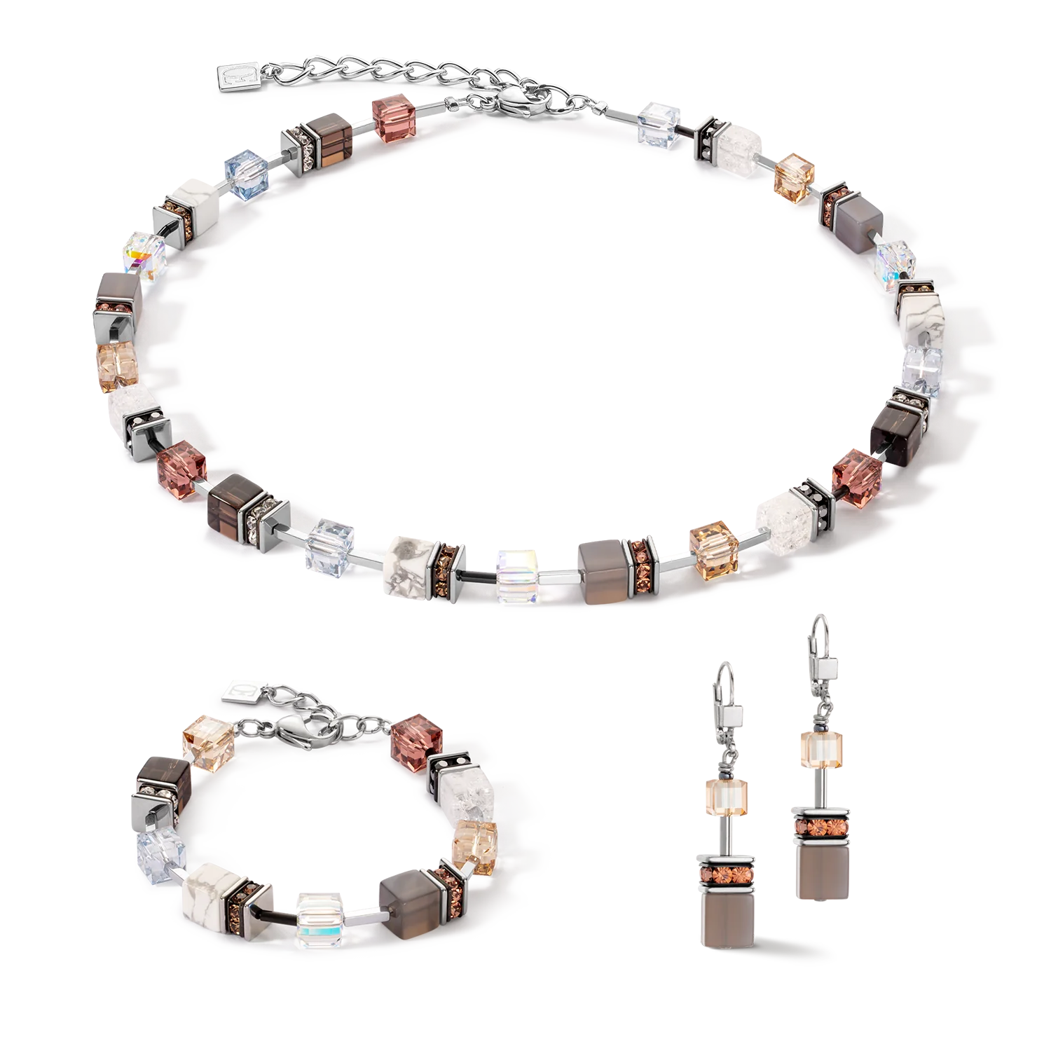 | Material: | Agate, Howlite, Rhinestone Rondelles, Rock Crystal, Smokey Quartz, Stainless steel, Swarovski® Crystals |