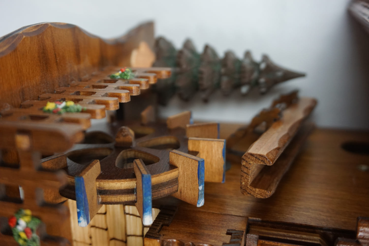 | Moving Parts: | Couple Kissing, Cuckoo, Dancers, Pendulum, Water Wheel |