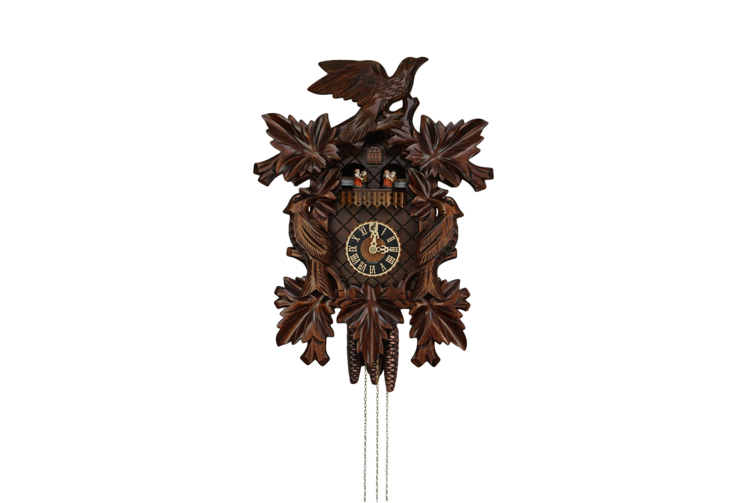 Features: Medium-pitched cuckoo sound, chimes once on the half an hour and varyingly on the full hour, depending on the hour (i.e. 7 o´clock – 7 times). Dancing figurines turn while music is playing.