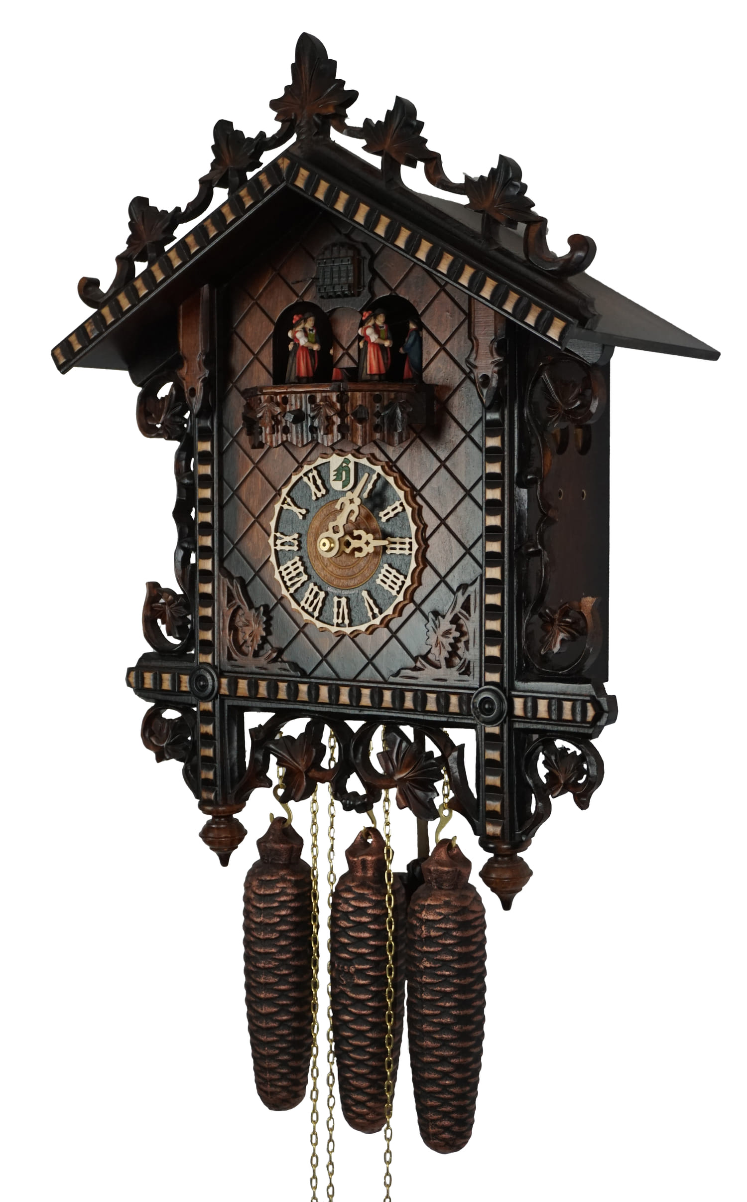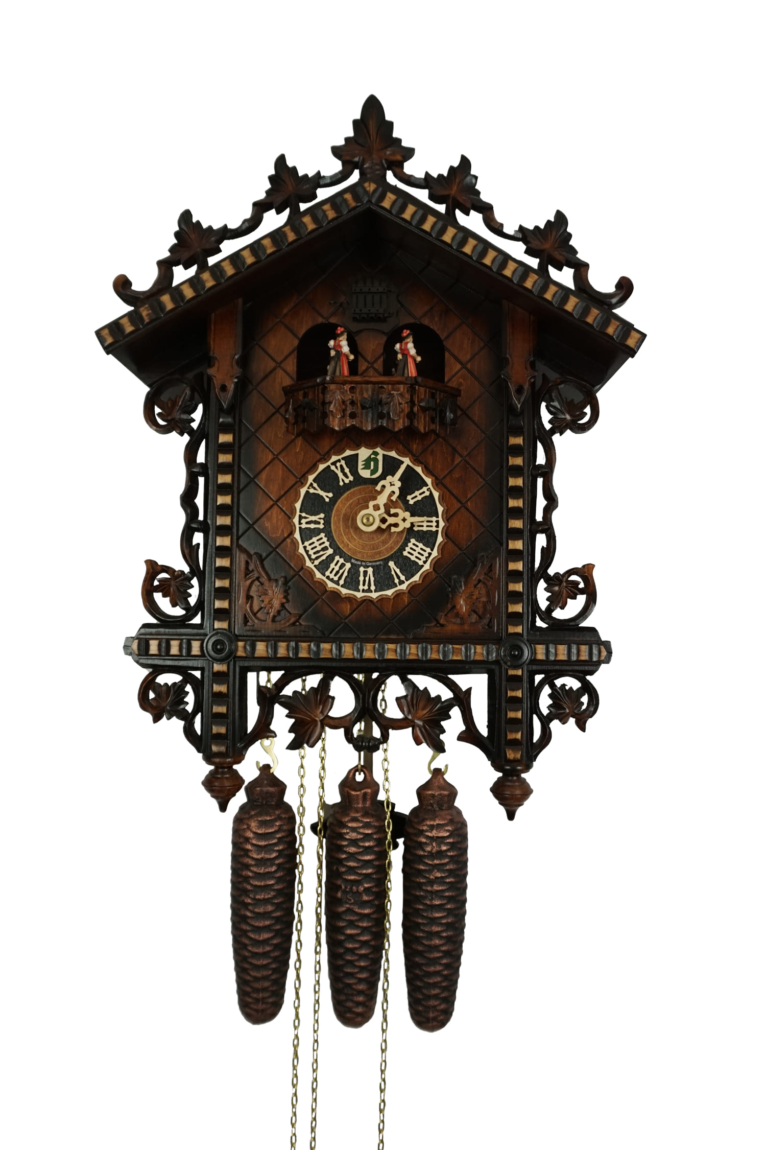 Features: Low-pitched cuckoo sound, chimes once on the half an hour and varyingly on the full hour, depending on the hour (i.e. 7 o´clock – 7 times). The figures dance while music is playing.