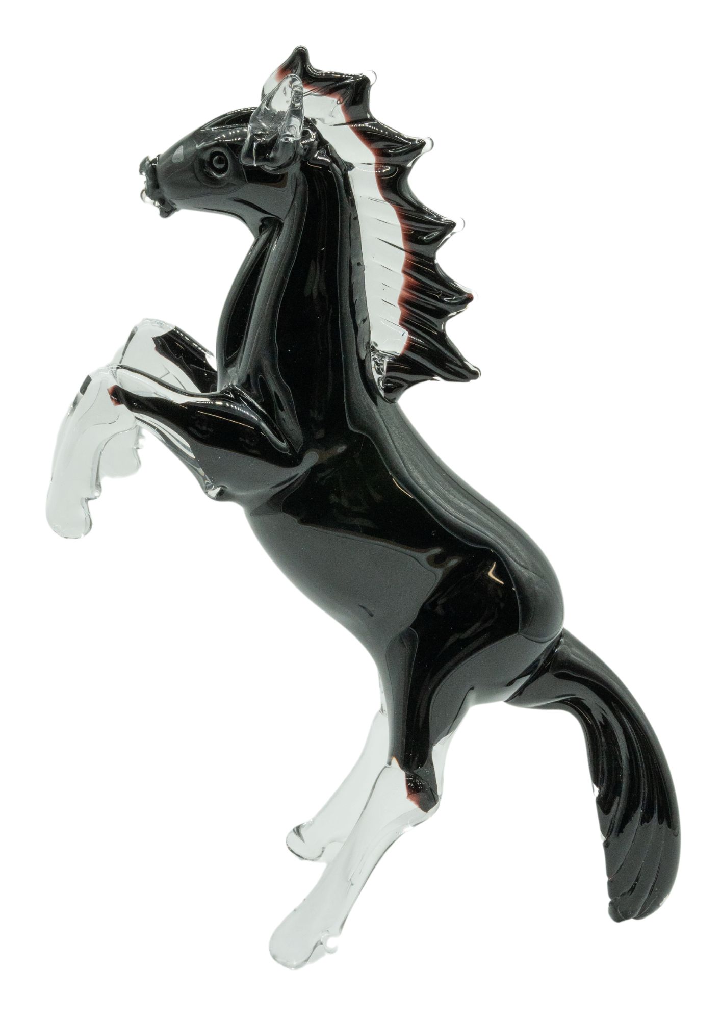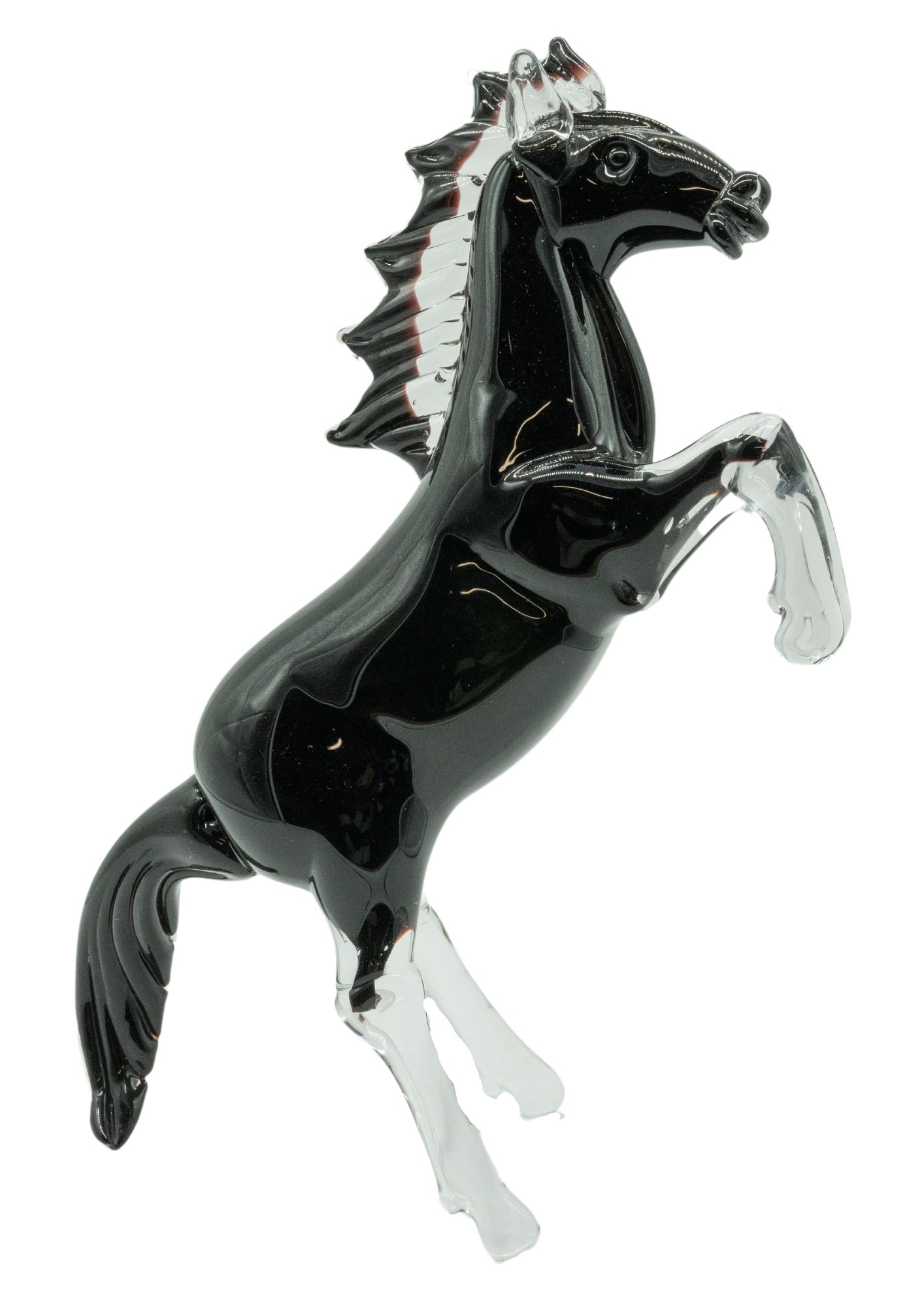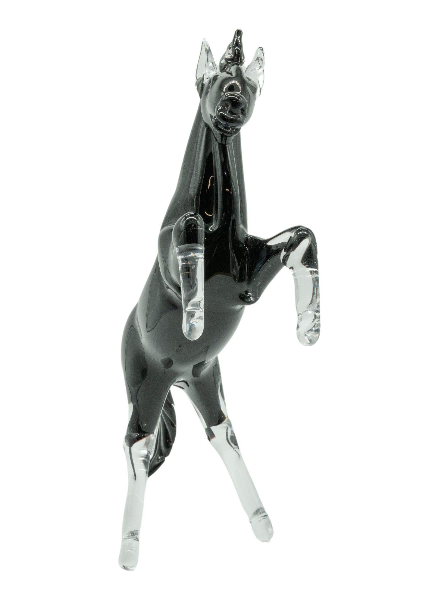 This unique piece of art is ideal for horse lovers, collectors, and anyone with an appreciation for fine craftsmanship. It makes a thoughtful and distinctive gift that will be cherished for years to come. Bring the beauty and grace of the stallion into your home or office with this extraordinary black glass statue, a testament to the skill and creativity of our glassblowing artisans.