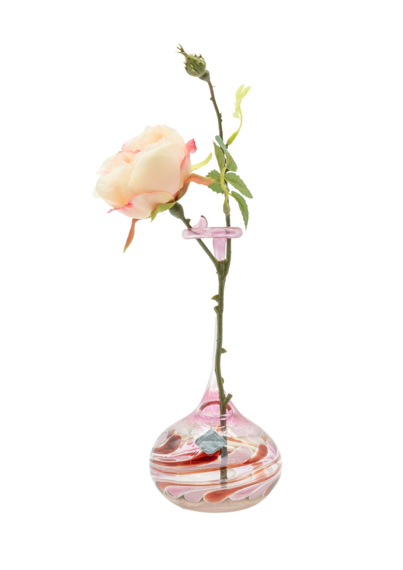 Gift yourself or a loved one this glassblower's creation—a work of art that not only holds a delicate bloom but elevates it to a realm of unparalleled artistry. Let the singular beauty of a lone rose find its perfect complement in this hand-crafted masterpiece, where the union of nature and craftsmanship unfolds in a harmonious ballet of elegance and grace.