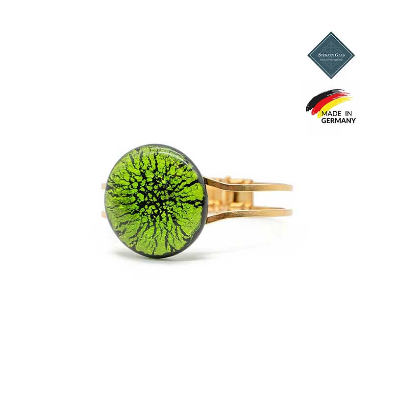 Beautifully-crafted jewelry piece created by our very own Michael Greiner-Adam. The pendant is made by hand using the fusing method. The ring itself is made of stainless steel, first plated with silver, then with gold.