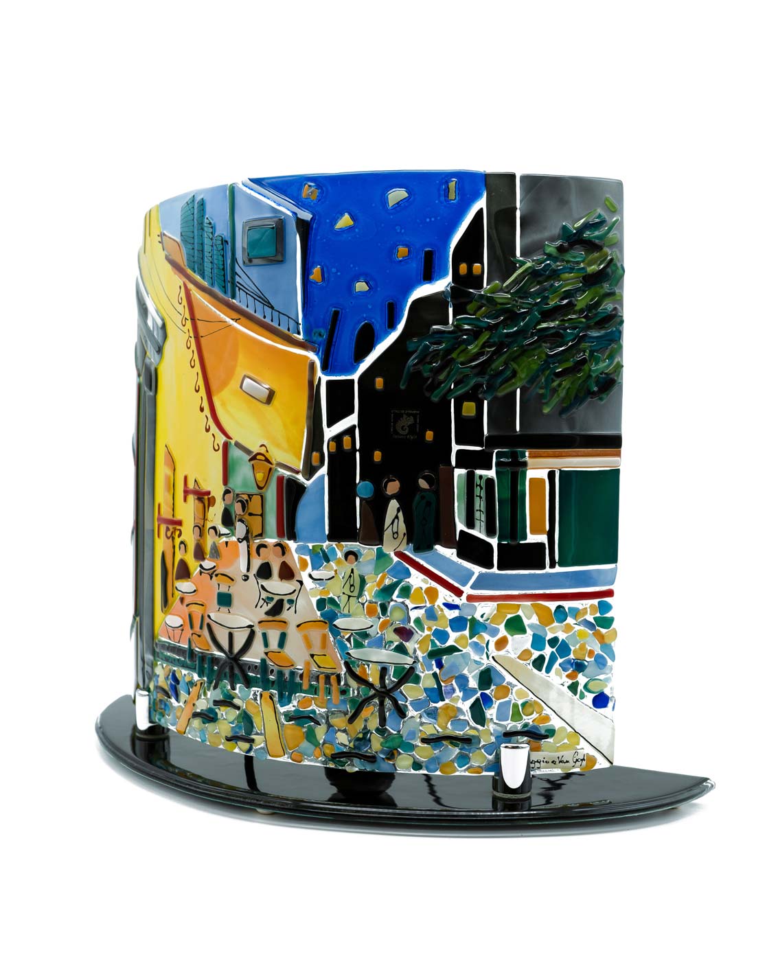 Through their amazingly-creative glass artists, Sebino Style mixes light, colors, and reflections to create intricate, yet harmonious handmade artworks. Their artists use a variety of methods, namely mosaics and fusing, to bring about modern remakes of well-known classical artworks. In this case, the classical painting by Vincent Van Gogh is recreated in the form of a square decorative plate, sure to be an eyecatcher in any setting!