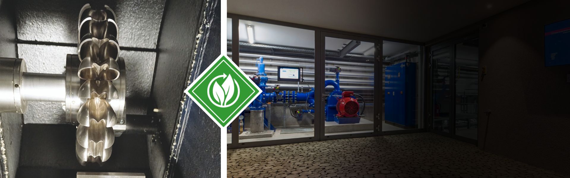 It was a lucky coincidence that the local sewage plant in Hinterzarten encountered a problem when it was expanding. They had to divert their grey water (freshly cleared wastewater) because it was too warm to be reintroduced into nature. So, hey laid a pipe all the way down to this valley, where the owners of Hofgut Sternen saw an opportunity. Negotiations were started If a turbine could be connected to this pipe and after years of planning this power plant went into operation in 2016 • Some facts about the water turbine: • Drop height: 152m (approx. 500ft) • Water pressure: 15 bar (approx. 220 psi) • Water flow: 60 | / s (approx., 15,5 gallons/s) • Electric capability: 8-74 kWh → average 22 kWh → enough for approx. 210.000 kW / year which is about 34% of annual consumption.