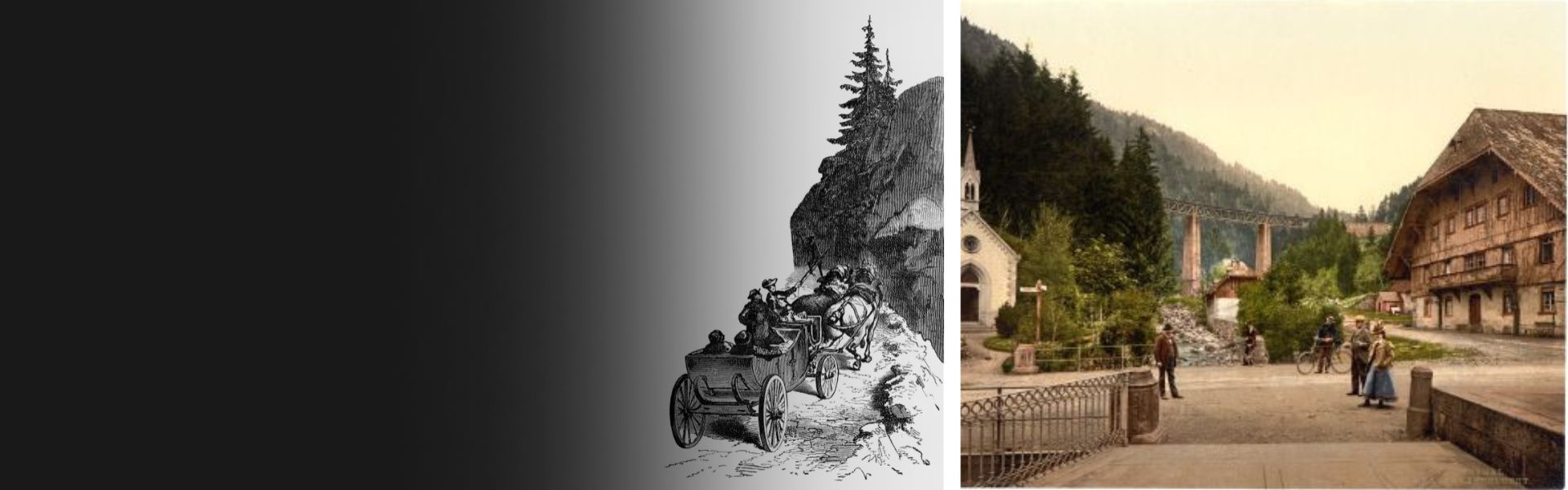 days Hofgut Sternen is a popular tour stop when travelling through the Black Forest: You'll find a Hotel, Shops with Handicrafts, glassblowing and restaurants. But all this didn't settle here coincidentally but rather developed over 700 years. But why would people settle here 700 years ago and how did they make a living? Well passing through this valley was a very important traffic link and still is today, between short distance Freiburg – Constance and long-distance Vienna – Paris. Travelling through the valley was very cumbersome with bad roads and up to 20% ascent. Along with all the travellers, industries started to settle and provide services, this is how “The Inn under the Ascent” started developing. It attracted trades such as Saddler, wainwright, blacksmith, cobbler, a ropewalk, saws and mills to provide services for passengers. Money was also earned by offering extra draughthorses for rent just for the strenuous ascent. Life was tough around here in the Middle Ages but you had all the resources required: water and timber. But with the invention of electricity, light light and machinery there was a possibility for the new energy sources and in 1912 a first water turbine was installed in the former laundry (the small building behind the hotel) • That turbine was taken as an example and brought back to life with modern technology in the SteigenHaus.